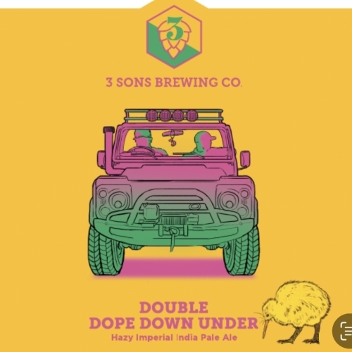 Double Dope Down Under, Hazy imperial India pale ale tripple dry hopped with Nectaron, Motueka, and Citra.