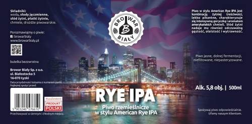 RYE IPA, Piwo w stylu American Rye IPA jest to kombinacją żytniej treściwości, lekko pikantne, charakteryzuje się intensywną goryczką i aromatem amerykańskich chmieli. Słód żytni nadaje mu również odczuwalną gęstość, oleistość i wytrawność.