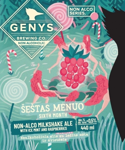 Non Alco Sixth Month / Non Alco Šeštas Mėnuo, Chill out! This AF version of our much-loved Raspberry Milkshake ale still has all the velvety mouthfeel and characteristic pink body of the original. In our constant pursuit to brew experimental beers of outstanding quality, we’ve thrown in a blast of ice mint for good measure to take one of our most popular brews to the next level when it comes to flavour and refreshment.