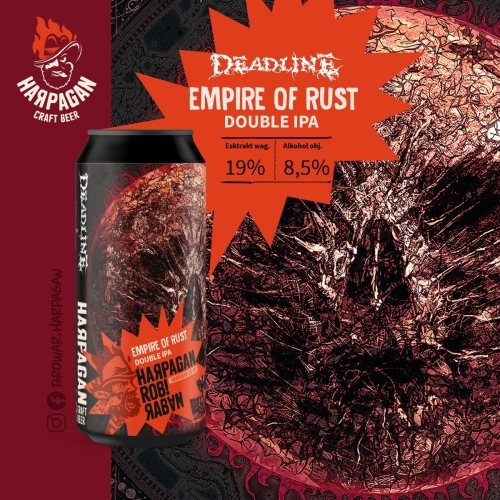 Przed Wami EMPIRE OF RUST – oldschoolowe Double IPA, które uwarzyliśmy wspólnie z kapelą Deadline. Chłopaki pochodzą z Tychów, a ostatnio rozwalili scenę na Wacken Open Air po zwycięstwie w Wacken Metal Battle Poland 2025. Ich najnowszy album Dust, Bones and Oblivion to fuzja death metalu, post metalu i postapokaliptycznych melodii – i dokładnie taki klimat zamknęliśmy w tym piwie.
