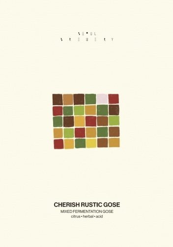 CHERISH RUSTIC GOSE, Jeju young tangerines, juniper berries, cilantro seeds, and angelica are soaked in light wheat beer base to create a refreshing acidity, a subtle, refreshing, dry scent, and finish
