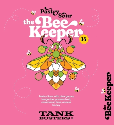 The Beekeeper Vol. 14, The Beekeeper vol. 14 is a vibrant Pastry Sour brewed at 18° Plato and 5% ABV. Crafted with pink guava, mandarin, passion fruit, calamansi, and lime, then rounded with wildflower honey for natural depth and balance. Smooth, juicy, and refreshingly tart, with layers of tropical and citrus character. Brewed without lactose and with absolutely no artificial flavors or additives – just real fruit, real honey, and pure craftsmanship in every sip.